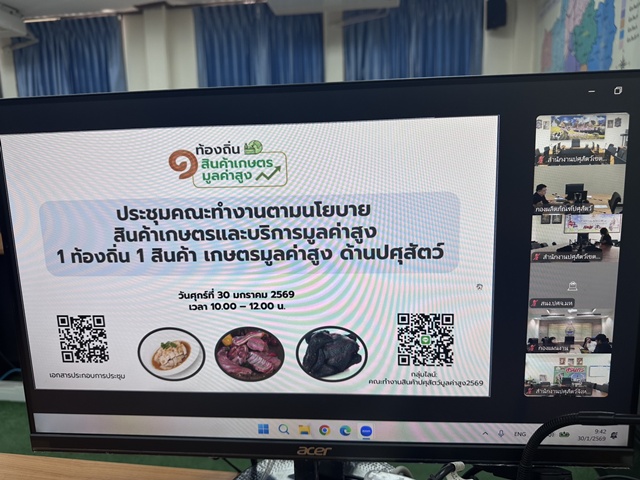 วันที่ 30 มกราคม 2569 น.สพ.พืชผล น้อยนาฝาย ปศุสัตว์เขต 5 มอบหมายให้ นางสาวกนกพร พวงเงินมาก นักวิชาการสัตวบาลชำนาญการ ส่วนส่งเสริมและพัฒนาการปศุสัตว์ สำนักงานปศุสัตว์เขต 5 เข้าร่วมประชุมคณะทำงานตามนโยบายสินค้าเกษตรและบริการมูลค่าสูง 1 ท้องถิ่น 1 สินค้าเกษตรมูลค่าสูง ด้านปศุสัตว์ ครั้งที่1/2569 โดยมี น.สพ.มนัส เทพรักษ์ รองอธิบดีกรมปศุสัตว์ เป็นประธานในการประชุม ผ่านระบบสื่อสารออนไลน์(Zoommeeting) การประชุมดังกล่าวเป็นการประชุมเพื่อคัดเลือกพื้นที่สินค้าเกษตรมูลค่าสูงด้านปศุสัตว์ และจัดทำแผนพัฒนาสินค้าเกษตรด้านปศุสัตว์ให้เกิดผลเป็นรูปธรรม ซึ่งการนำเสนอพื้นที่สินค้าเกษตรมูลค่าสูง ด้านปศุสัตว์ ประจำปีงบประมาณ 2569 มีจำนวนทั้งสิ้น 19 สินค้ามูลค่าสูง ในการนี้พื้นที่สำนักงานปศุสัตว์เขต 5 มีจำนวน 2 ชนิดสินค้ามูลค่าสูง ที่ได้รับการคัดเลือกในปีงบประมาณ 2569 ได้แก่