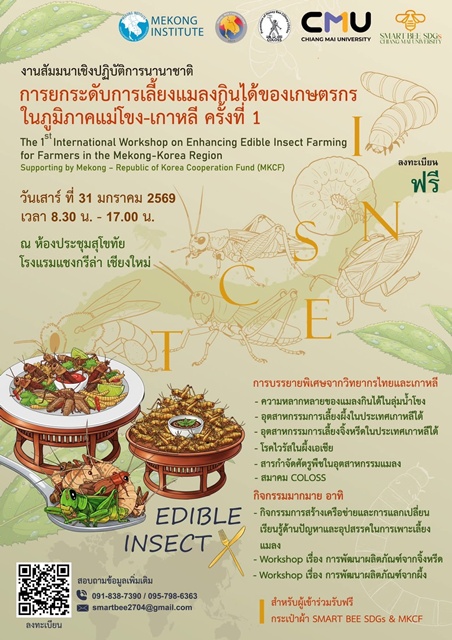 วันที่ 31 มกราคม 2569 น.สพ.พืชผล น้อยนาฝาย ปศุสัตว์เขต 5 มอบหมายให้ น.สพ.ชัยโรจน์ โพธิ์เจริญ ผู้อำนวยการส่วนสุขภาพสัตว์ เข้าร่วมประชุมโครงการ “การยกระดับความมั่นคงทางอาหารและความยั่งยืนในประเทศลุ่มนำ้โขงผ่านการบูรณาการแมลงกินได้ด้วยนวัตกรรมเพื่ออาหารแห่งอนาคต” โดยมีเป้าหมายเพื่อเสริมสร้างความมั่นคงทางอาหาร ยกระดับศักยภาพเกษตรกร และผลักดันการพัฒนาที่ยั่งยืนในกลุ่มประเทศลุ่มน้ำโขง ผ่านการบูรณาการองค์ความรู้ด้านแมลงกินได้ซึ่งกำลังได้รับการยอมรับในฐานะอาหารแห่งอนาคต (Future Food) ณ โรงแรมแชงกรีล่า จังหวัดเชียงใหม่ โดยทีมงาน SMART BEE SDGs คณะวิทยาศาสตร์ มหาวิทยาลัยเชียงใหม่ เป็นเจ้าภาพหลัก โดยมี รศ.ดร.เทิด ดิษยธนูวัฒน์ หัวหน้าโครงการฯ ร่วมกับกองทุนความร่วมมือลุ่มนำ้โขง–สาธารณรัฐเกาหลี (Mekong–ROK Cooperation Fund: MKCF) และสถาบันความร่วมมือเพื่อพัฒนาเศรษฐกิจลุ่มนำ้โขง (Mekong Institute: MI) พร้อมการมีส่วนร่วมของนักวิจัย ผู้เชี่ยวชาญ และเกษตรกรจากประเทศไทย กัมพูชา สปป.ลาว เมียนมา เวียดนาม และสาธารณรัฐเกาหลี ภายในงานประกอบด้วยการบรรยายพิเศษจากผู้เชี่ยวชาญชั้นนำของสาธารณรัฐเกาหลี นำโดย Prof. Dr. Chuleui Jung จาก Gyeongkuk National University และอีกหลากหลายท่านในประเด็นอุตสาหกรรมการเลี้ยงผึ้งและจิ้งหรีด, การจัดการโรคไวรัสในผึ้งเอเชีย, การใช้สารกำจัดศัตรูพืชในอุตสาหกรรมแมลง ตลอดจนการนำเสนอข้อมูลความหลากหลายของแมลงกินได้ในภูมิภาคลุ่มนำ้โขง ควบคู่กับกิจกรรมอบรมเชิงปฏิบัติการด้านการพัฒนาผลิตภัณฑ์จากแมลงและผึ้ง โดยผู้เชี่ยวชาญจากคณะเภสัชศาสตร์ และคณะอุตสาหกรรมเกษตร มหาวิทยาลัยเชียงใหม่ ซึ่งมุ่งเน้นการแปรรูปสู่ผลิตภัณฑ์อาหารและเวชสำอางมูลค่าสูง รวมถึงเวทีเสวนาและการสร้างเครือข่ายระหว่างนักวิจัยและเกษตรกร เพื่อแลกเปลี่ยนปัญหา อุปสรรค และแนวทางพัฒนาการเลี้ยงแมลงอย่างยั่งยืน ตลอดจนการหารือด้านการจัดตั้งกลุ่มเฝ้าระวังศัตรูผึ้งร่วมกับสมาคม COLOSS (Prevention of Honey Bee Colony Losses) มุ่งยกระดับแมลงกินได้จากอาหารพื้นบ้านสู่ “อาหารแห่งอนาคต (Future Food)” เนื่องจากเป็นแหล่งโปรตีนทางเลือกที่มีคุณภาพสูง สามารถช่วยเสริมความมั่นคง ทางอาหารในช่วงที่โลกเผชิญปัญหาการขาดแคลนอาหารและจำนวนประชากรที่เพิ่มขึ้น ขณะเดียวกันการเลี้ยงแมลงยังใช้ทรัพยากรน้ำและที่ดินน้อยกว่าการทำปศุสัตว์ทั่วไป และปล่อยก๊าซเรือนกระจกต่ำกว่า สอดคล้องกับแนวทางการพัฒนาที่ยั่งยืน อีกทั้งยังเป็นโอกาสทางเศรษฐกิจใหม่ที่สามารถสร้างรายได้ให้เกษตรกรรายย่อยและผู้ประกอบการ ตั้งแต่ระดับท้องถิ่นไปจนถึงระดับอุตสาหกรรมใ