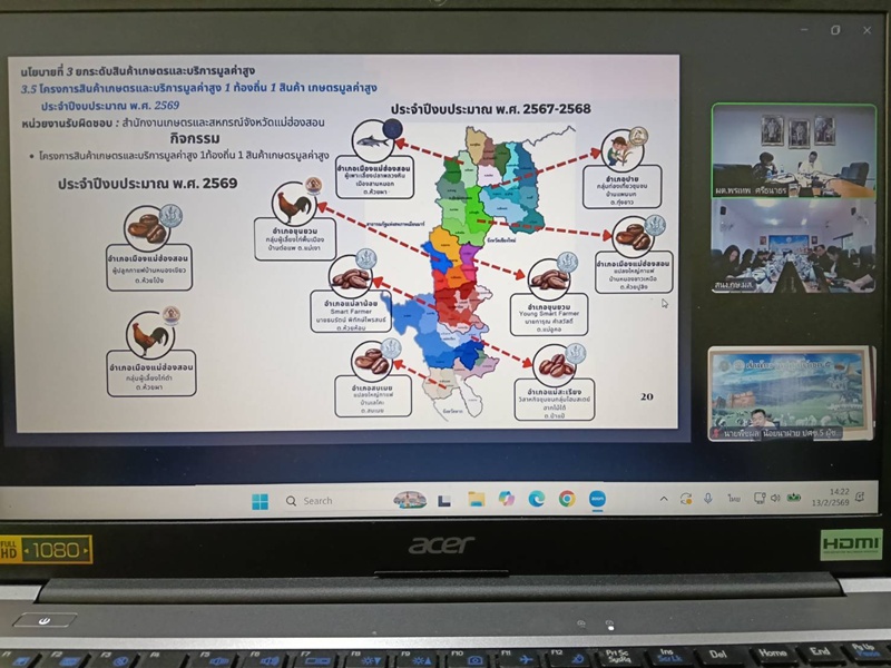วันที่ 13 กุมภาพันธ์ 2569 เวลา 13.30 น. นายพืชผล น้อยนาฝาย ปศุสัตว์เขต 5 พร้อมด้วยนายวุฒิชัย คำดี ผู้อำนวยการส่วนยุทธศาสตร์และสารสนเทศการปศุสัตว์ เข้าร่วมประชุมการตรวจติดตามความก้าวหน้าผลการดำเนินงานโครงการตามแผนการตรวจราชการของผู้ตรวจราชการกระทรวงเกษตรและสหกรณ์ ประจำปีงบประมาณ พ.ศ. 2569 รอบที่ 1 เขตตรวจราชการที่ 15 จังหวัดแม่ฮ่องสอน ผ่านระบบการประชุมทางไกล Zoom meeting ณ ห้องประชุมเล็ก สำนักงานปศุสัตว์เขต 5 อำเภอเมืองเชียงใหม่ จังหวัดเชียงใหม่ โดยมีนายพรเทพ ศรีธนาธร ผู้ตรวจราชการกระทรวงเกษตรและสหกรณ์เป็นประธานการประชุม พร้อมด้วยหัวหน้าส่วนราชการจากส่วนกลาง ส่วนภูมิภาค และหน่วยงานราชการในสังกัดกระทรวงเกษตรและสหกรณ์ในจังหวัดแม่ฮ่องสอนร่วมประชุม เพื่อตรวจราชการติดตามการปฏิบัติราชการของส่วนราชการในสังกัดกระทรวงเกษตรและสหกรณ์ ตามแผนการตรวจราชการกระทรวงเกษตรและสหกรณ์ โดยประธานในที่ประชุมได้กำชับให้ทุกหน่วยงานดำเนินการตามแผน ติดตามงานเกี่ยวกับแนวนโยบายกระทรวงเกษตรและสหกรณ์ และถือประโยชน์ของพี่น้องเกษตรกรเป็นสำคัญ