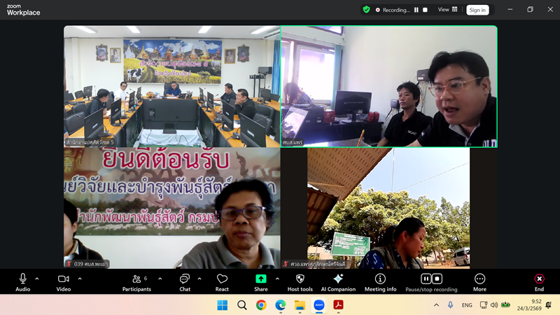 วันที่ 24 มีนาคม 2569 นายสัตวแพทย์พืชผล น้อยนาฝาย ปศุสัตว์เขต 5 เป็นประธานการประชุม คณะทำงานโครงการผลิตอาหารหยาบคุณภาพสูง เพื่อช่วยเหลือเกษตรกรผู้เลี้ยงส้ตว์รายย่อย ครั้งที่1/2569 ณ ห้องประชุมกลาง สำนักงานปศุสัตว์เขต 5 อำเภอเมืองเชียงใหม่ จังหวัดเชียงใหม่ และผ่านระบบประชุมทางไกลออนไลน์ (Zoom Meeting)