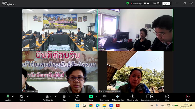 โดยมี นายสุเทพ สุขผล ผอ.ส่วนส่งเสริมและพัฒนาการปศุสัตว์ นายวุฒิชัย คำดี ผอ.ส่วนยุทธศาสตร์และสารสนเทศการปศุสัตว์ ผอ.ศูนย์วิจัยและบำรุงพันธ์สัตว์แพร่ ผอ.ศูนย์วิจัยและบำรุงพันธุ์สัตว์พะเยา ผอ.ศูนย์วิจัยและพัฒนาอาหาร์สัตว์แพร่ ผู้แทนศูนย์วิจัยและบำรุงพันธุ์สัตว์เชียงใหม่ และเจ้าหน้าที่ส่วนส่งเสริมและพัฒนาการปศุสัตว์ สำนักงานปศุสัตว์เขต 5 เข้าร่วมประชุม เพื่อติดตามความก้าวหน้าโครงการผลิตอาหารหยาบคุณภาพสูงฯ ในปีงบประมาณ 2568 รับทราบปัญหาและอปุสรรคที่ผ่านมา พร้อมทั้งแผนงานและแนวทางการดำเนินงานในปีงบประมาณ 2569 เพื่อให้การขับเคลื่อนโครงการเป็นไปตามวัตถุประสงค์ที่โครงการกำหนดไว้