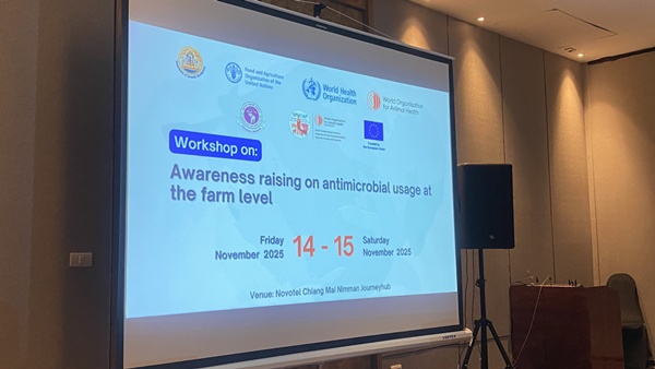 วันที่ 14 พฤศจิกายน 2568 นายพืชผล น้อยนาฝาย ปศุสัตว์เขต 5 ได้มอบหมายให้ สพ.ญ.มณิชญา ประชุม นายสัตวแพทย์ชำนาญการพิเศษ ส่วนมาตรฐานการปศุสัตว์ เข้าร่วมโครงการ “Workshop on Awareness Raising on Antimicrobial Usage at the Farm Level” โดยเป็น Speaker Topic : Real-World Practices in Antimicrobial Use: Sharing Experiences in Livestock Production ณ โรงแรมโนโวเทล เชียงใหม่ เพื่อเป็นการแลกเปลี่ยนเรียนรู้ระหว่างกรมปศุสัตว์ องค์การระหว่างประเทศ WOAH และคณะสัตวแพทยศาสตร์ มหาวิทยาลัยเชียงใหม่ ภายใต้แนวคิดสุขภาพหนึ่งเดียว (One Health) ตระหนักว่าสุขภาพของคน และสัตว์ เชื่อมโยงและพึ่งพาอาศัยกันอย่างใกล้ชิด การแก้ปัญหาเชื้อดื้อยาจึงจำเป็นต้องอาศัยความร่วมมือจากหลายภาคส่วน☘️🍀