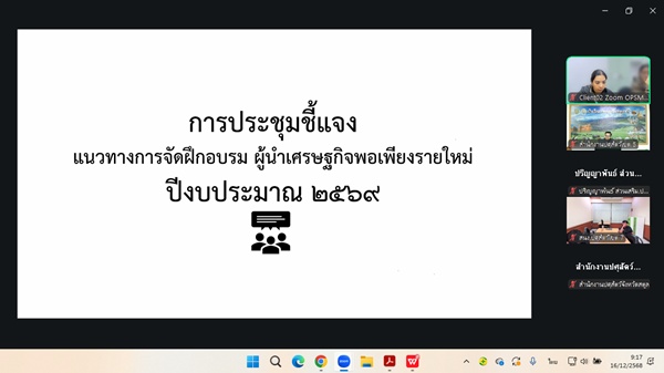วันที่ 16 ธันวาคม 2568 นายสัตวแพทย์พืชผล น้อยนาฝาย ปศุสัตว์เขต 5 มอบหมายให้นายสุเทพ สุขผล ผู้อำนวยการส่วนส่งเสริมและพัฒนาการปศุสัตว์ พร้อมด้วยเจ้าหน้าที่ส่วนส่งเสริมฯ สำนักงานปศุสัตว์เขต 5 เข้าร่วมประชุมชี้แจงแนวทางการจัดประชุมเชิงปฏิบัติการ หลักสูตร พัฒนาผู้นำเศรษฐกิจพอเพียงรายใหม่ และหลักสูตร ผู้นำเศรษฐกิจพอเพียงขั้นสูง กิจกรรมส่งเสริมเกษตรทฤษฎีใหม่ ประจำปีงบประมาณ พ.ศ. 2569 ผ่านระบบประชุมทางไกล (Zoom Conference) โดยมีผู้เข้าร่วมประชุมประกอบด้วย หัวหน้ากลุ่มฝ่ายเจ้าหน้าที่ผู้รับผิดชอบโครงการส่งเสริมเกษตรทฤษฎีใหม่ของสำนักงานปศุสัตว์จังหวัดและสำนักงานปศุสัตว์เขต โดยมีประเด็นเพื่อทราบแนวทางการดำเนินงาน การจัดซื้อจัดจ้าง และการประเมินผลโครงการประชุมเชิงปฏิบัติการฯ และประเด็นเพื่อพิจารณาการคัดเลือกเกษตรกร และวัน เวลา และสถานที่ในการจัดโครงการประชุมเชิงปฏิบัติการฯ