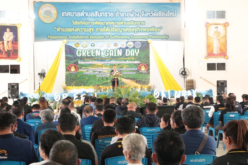 วันที่ 24 กุมภาพันธ์ 2569 นายสัตวแพทย์อนุสรณ์ หอมขจร ปศุสัตว์จังหวัดเชียงใหม่พร้อมด้วยกลุ่มส่งเสริมและพัฒนาการปศุสัตว์ และสำนักงานปศุสัตว์อำเภอฝาง ร่วมจัดนิทรรศการฐานเรียนรู้ เรื่องเศษวัสดุการเกษตรแปรรูปอาหารสัตว์ ในงานเวทีรณรงค์ "Green Gain Day" สร้างการเรียนรู้และสร้างแรงจูงใจ "ไม่เผาแต่ได้รายได้" โดยมี นายชัชวาลย์ ปัญญา รองผู้ว่าราชการจังหวัดเชียงใหม่ เป็นประธานในพิธีเปิดฯ มีว่าที่ร้อยตรี นพรัตน์ ศุภกิจโกศล นายอำเภอฝางกล่าวต้อนรับ และมีนายเสน่ห์ แสงคำ เกษตรจังหวัดเชียงใหม่ กล่าวรายงาน ทั้งนี้ยังมีหน่วยงานที่เกี่ยวข้องร่วมจัดฐานเรียนรู้ภายในงานอีก 6 ฐาน เพื่อนำเสนอเส้นทางรายได้จากวัสดุเหลือใช้ทางการเกษตร และการจัดการวัสดุเหลือใช้ทางการเกษตรโดยไม่เผา สร้างมูลค่าเพิ่ม สร้างผลิตภัณฑ์ และนวัตกรรมชุมชน ผ่านกระบวนการเรียนรู้แบบเกษตรกรมีส่วนร่วม ณ หอประชุมเทศบาลตำบลสันทราย ตำบลสันทราย อำเภอฝาง จังหวัดเชียงใหม่