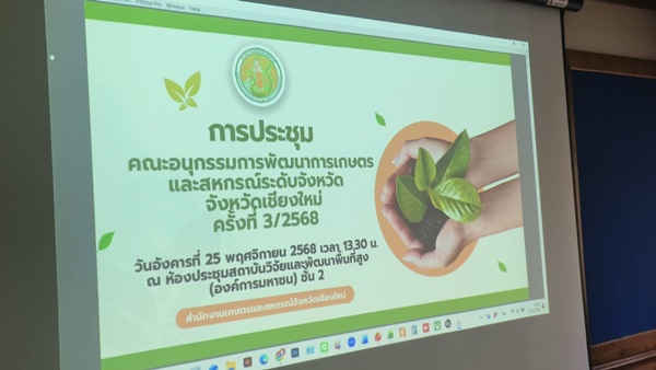 วันที่ 25 พฤศจิกายน 2568 เวลา 13.30 น. นายสัตวแพทย์อนุสรณ์ หอมขจร ปศุสัตว์จังหวัดเชียงใหม่ ร่วมประชุมคณะอนุกรรมการพัฒนาการเกษตรและสหกรณ์ระดับจังหวัด จังหวัดเชียงใหม่ ครั้งที่ 3/2568 โดยมีนายรัฐพล นราดิศร ผู้ว่าราชการจังหวัดเชียงใหม่เป็นประธานในที่ประชุม เพื่อติดตามผลการขับเคลื่อนงานภาคการเกษตรในระดับพื้นที่ ณ ห้องประชุมชั้น 3 สถาบันวิจัยและพัฒนาพื้นที่สูง (องค์การมหาชน)