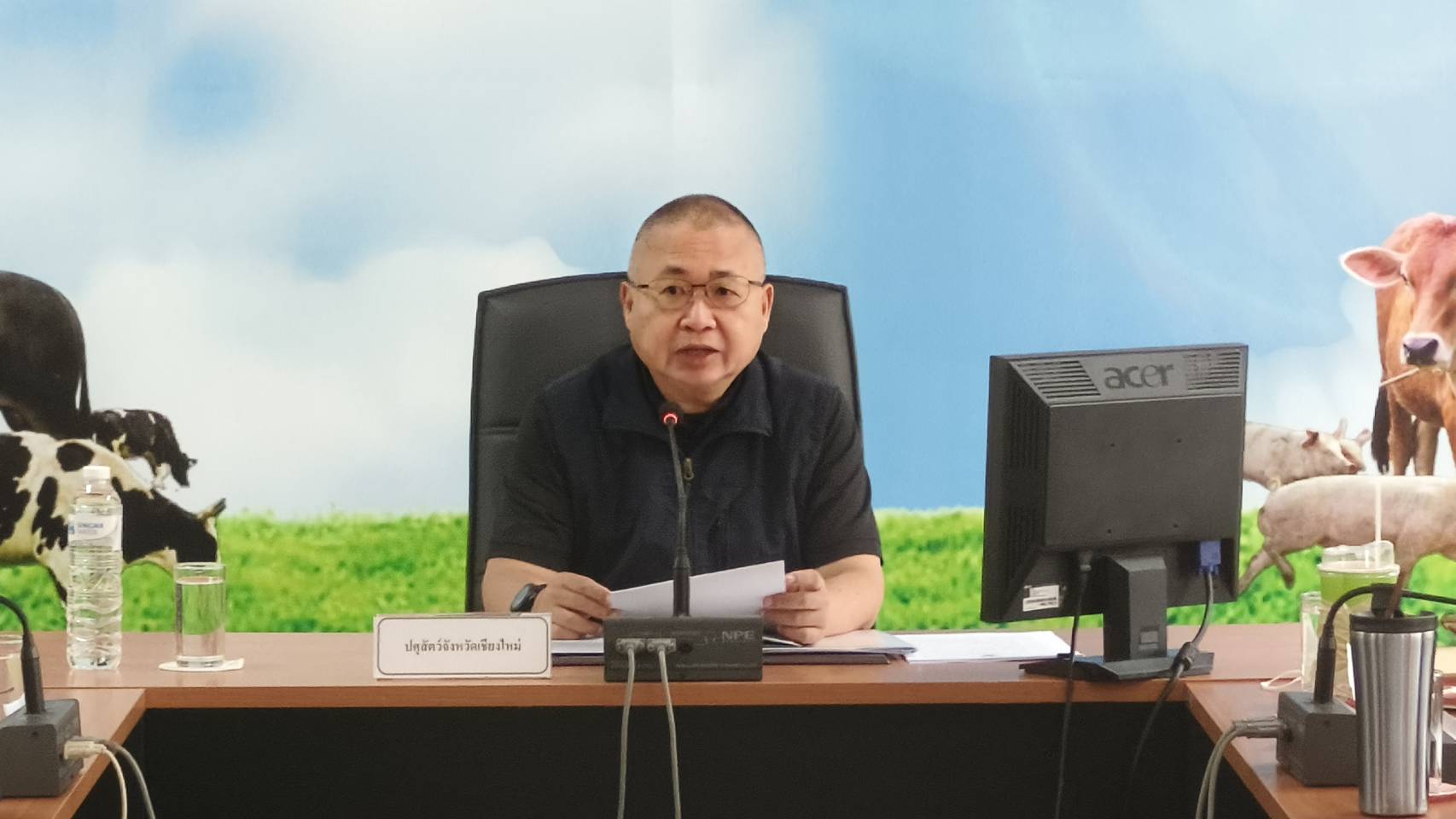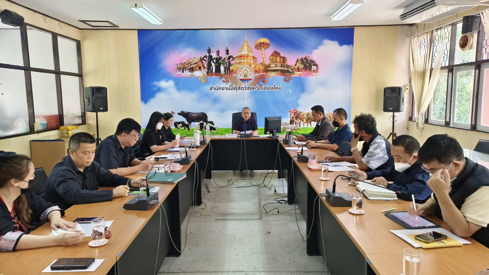 วันที่ 31 มีนาคม 2569 เวลา 08.30 น. นายสัตวแพทย์อนุสรณ์ หอมขจร ปศุสัตว์จังหวัดเชียงใหม่ เป็นประธานในการประชุมประจำเดือนมีนาคม 2569 เพื่อติดตามผลการดำเนินงานด้านการบริหารงานโครงการต่างๆ ได้แก่ การพัฒนาสุขภาพสัตว์, การพัฒนาคุณภาพสินค้าปศุสัตว์ รวมไปถึงการส่งเสริมและพัฒนาการปศุสัตว์ในพื้นที่จังหวัดเชียงใหม่ โดยมีหัวหน้ากลุ่ม/ฝ่าย และปศุสัตว์อำเภอทั้ง 25 อำเภอเข้าร่วม ณ ห้องประชุมชั้น 2 สำนักงานปศุสัตว์จังหวัดเชียงใหม่