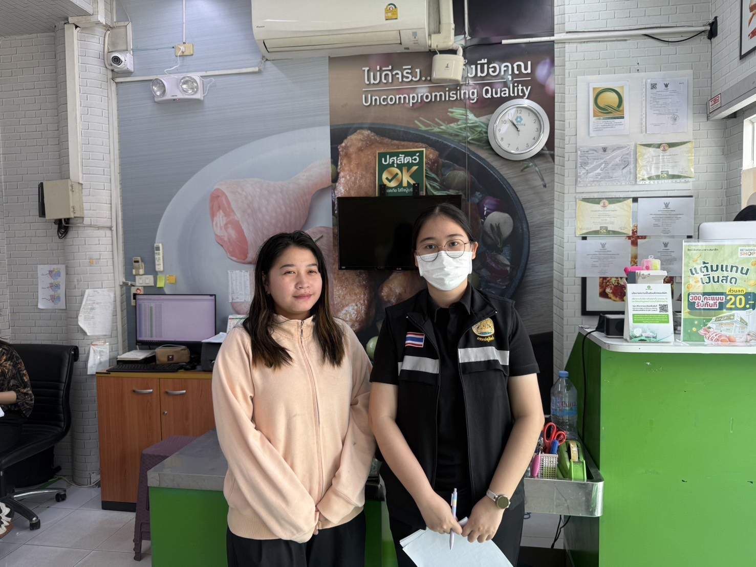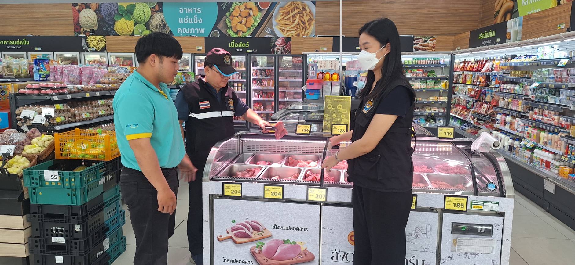วันที่ 2 เมษายน 2569 เวลา 10:30 น. เจ้าหน้าที่กลุ่มพัฒนาคุณภาพสินค้าปศุสัตว์ สำนักงานปศุสัตว์จังหวัดพะเยา ตรวจติดตามสถานที่จำหน่ายเนื้อสัตว์ ในช่วงเทศกาลสงกรานต์ตามโครงการปศุสัตว์ OK สถานที่จำหน่ายเนื้อสัตว์ ปลอดภัย ประจำปีงบประมาณ 2569 ในพื้นที่อำเภอเมืองพะเยา เพื่อให้รักษาความสะอาดและระดับคุณภาพมาตรฐานการจำหน่ายสินค้าปศุสัตว์ และสร้างทางเลือกและความเชื่อมั่นในความปลอดภัยให้แก่ผู้บริโภคเนื้อสัตว์ ในจังหวัดพะเยา ทั้งนี้โดยเฉพาะสถานที่จำหน่ายภายใต้สัญลักษณ์ “ปศุสัตว์ OK” ซึ่งเป็นโครงการที่กรมปศุสัตว์จัดทำขึ้นเพื่อรับรองสถานที่จำหน่ายเนื้อสัตว์หรือผลิตภัณฑ์ปศุสัตว์ที่มาจากฟาร์มมาตรฐาน ผ่านกระบวนการเชือดชำแหละในโรงฆ่าสัตว์ที่ถูกกฎหมาย สามารถสอบย้อนกลับถึงแหล่งผลิตได้ โดยมีสินค้าปศุสัตว์ที่อยู่ในขอบข่ายการรับรองทั้งหมด 7 ชนิดได้แก่ เนื้อหมู เนื้อไก่ เนื้อเป็ด เนื้อโค ไข่ไก่สด ไข่เป็ดสด และไข่นกกระทาสด จึงเป็นทางเลือกสำหรับผู้บริโภคในการซื้อสินค้าปศุสัตว์ที่ผ่านการรับรองมาตรฐานของกรมปศุสัตว์