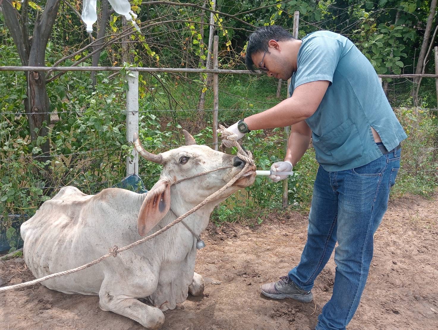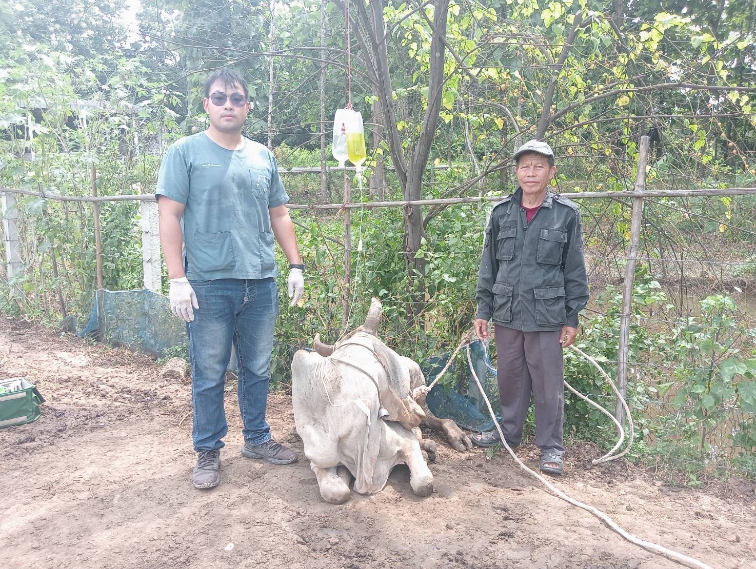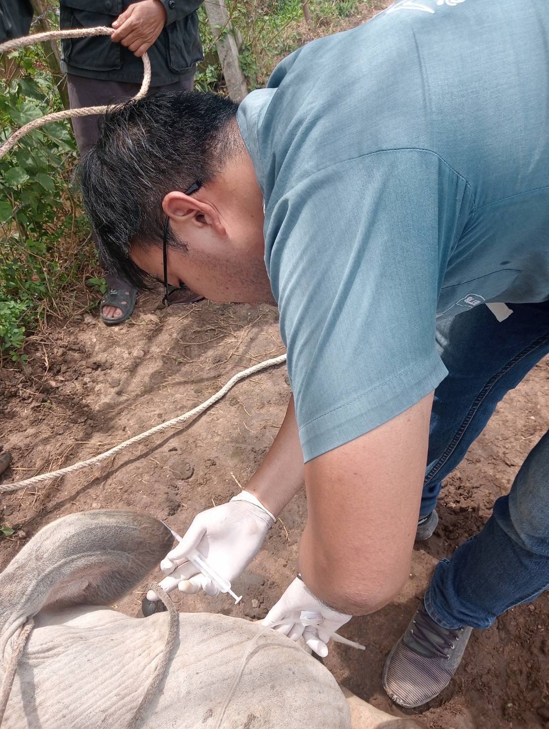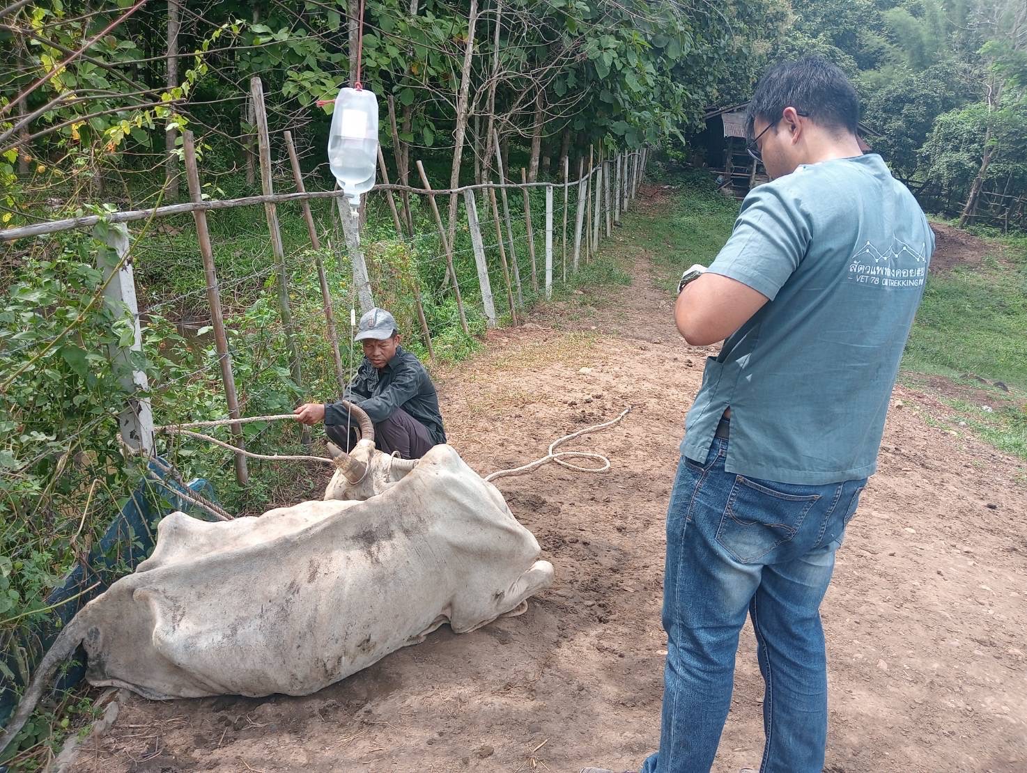วันที่ 8 ตุลาคม 2568 เวลา 11.00 น. นายพิเชษฐ์ คุณาคำ นายสัตวแพทย์ปฏิบัติการ พร้อมด้วยเจ้าหน้าที่สำนักงานปศุสัตว์อำเภอเชียงม่วน จังหวัดพะเยา ได้ลงพื้นที่ตรวจสอบและทำการรักษาโคแม่พันธุ์ เลขที่สัญญา 213/2560 ของโครงการกลุ่มจังหวัดภาคเหนือตอนบน 2 ซึ่งดูแลโดยกลุ่มวิสาหกิจชุมชนลำน้ำยม หมู่ที่ 4 ต.บ้านมาง อ.เชียงม่วน จ.พะเยา จากการวินิจฉัยเบื้องต้นพบว่าโคแม่พันธุ์มีภาวะซีด อ่อนแรง ไม่สามารถลุกเองได้ จึงทำการรักษาเบื้องต้น พร้อมทั้งเก็บตัวอย่างเลือดและอุจจาระส่งห้องปฏิบัติการเพื่อหาสาเหตุของโรคต่อไป