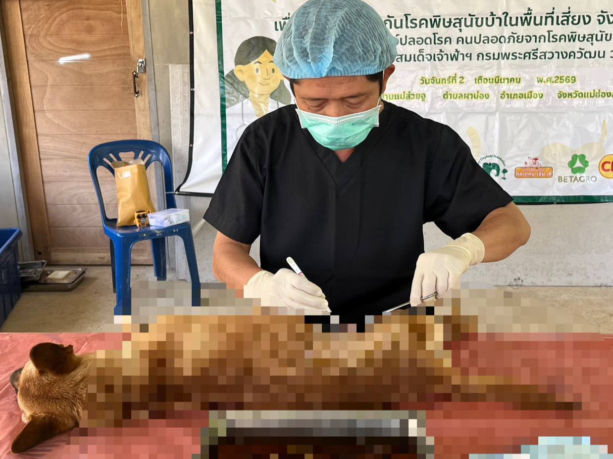 วันจันทร์ที่ 2 มีนาคม พ.ศ. 2569 นางสาวชนกภัทร อัฑฒ์ตระกูล นายสัตวแพทย์ชำนาญการ รักษาราชการแทนปศุสัตว์อำเภอเมืองแม่ฮ่องสอน พร้อมด้วยเจ้าหน้าที่สำนักงานปศุสัตว์อำเภอเมืองแม่ฮ่องสอน และเจ้าหน้าที่กลุ่มพัฒนาสุขภาพสัตว์ สำนักงานปศุสัตว์จังหวัดแม่ฮ่องสอน ลงพื้นที่ดำเนินโครงการเร่งรัดผ่าตัดทำหมันสุนัขและแมว โดยออกหน่วยให้บริการผ่าตัดทำหมันแก่สุนัขและแมวด้อยโอกาส ณ บ้านแม่ส่วยอู หมู่ที่ 13 ตำบลผาบ่อง อำเภอเมืองแม่ฮ่องสอน จังหวัดแม่ฮ่องสอน