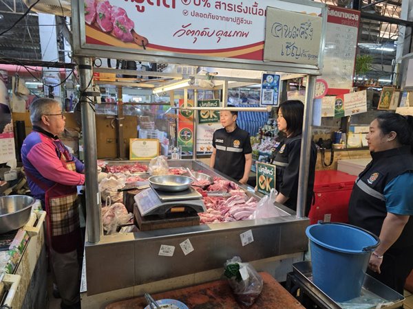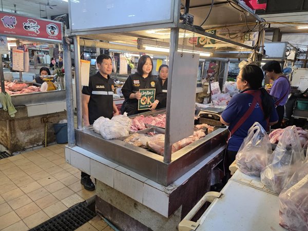 วันที่ 18 กุมภาพันธ์ 2569 เวลา 09.00 น. นายสมพงษ์ พิพัฒพงค์ชัย ปศุสัตว์จังหวัดแม่ฮ่องสอน พร้อมด้วยเจ้าหน้าที่กลุ่มพัฒนาคุณภาพสินค้าปศุสัตว์ สำนักงานปศุสัตว์จังหวัดแม่ฮ่องสอน และเจ้าหน้าที่สำนักงานปศุสัตว์อำเภอเมืองแม่ฮ่องสอน ลงพื้นที่ตรวจตลาดสดสายหยุด อำเภอเมืองแม่ฮ่องสอน จังหวัดแม่ฮ่องสอน เพื่อตรวจสอบสถานที่จำหน่ายสินค้าปศุสัตว์ประเภทเนื้อสัตว์และไข่สด รวมทั้งประชาสัมพันธ์โครงการ “ปศุสัตว์ OK” เพื่อสร้างความเชื่อมั่นแก่ผู้บริโภค ส่งเสริมให้เลือกซื้อสินค้าปศุสัตว์ที่สะอาด ปลอดภัย ได้มาตรฐาน และสามารถบริโภคได้อย่างมั่นใจภายใต้ตราสัญลักษณ์ “ปศุสัตว์ OK”