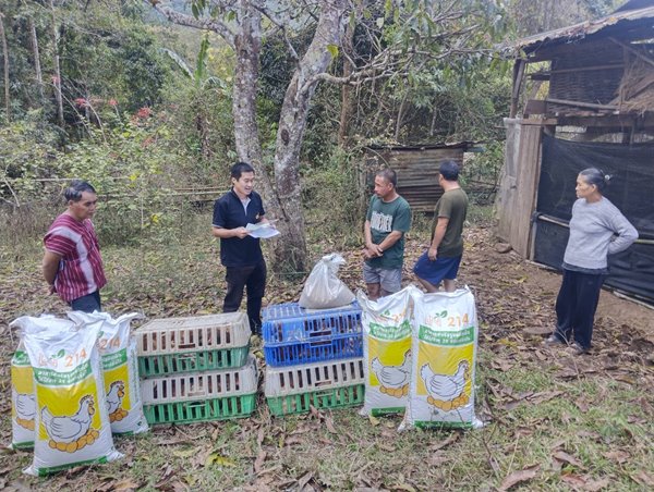 วันที่ 26 กุมภาพันธ์ 2569 นายสมพงษ์ พิพัฒพงค์ชัย ปศุสัตว์จังหวัดแม่ฮ่องสอน มอบหมายให้ เจ้าหน้าที่กลุ่มส่งเสริมและพัฒนาการปศุสัตว์ สำนักงานปศุสัตว์จังหวัดแม่ฮ่องสอน ส่งมอบปัจจัยการผลิตโครงการพัฒนาเกษตรกรรมยั่งยืน กิจกรรมส่งเสริมเกษตรทฤษฎีใหม่ ณ บ้านห้วยปูลิง หมู่ 1 ตำบลห้วยปูลิง อำเภอเมืองแม่ฮ่องสอน จังหวัดแม่ฮ่องสอน ประกอบด้วย ไก่พันธุ์ไข่ จำนวน 45 ตัว และอาหารไก่ไข่ จำนวน 187 กิโลกรัม ให้กับกลุ่มผู้เลี้ยงสัตว์ปีกบ้านห้วยปูลิง เพื่อให้เกิดความมั่นคงทางอาหาร เป็นแหล่งโปรตีนบริโภคในครัวเรือน และสร้างรายได้ให้แก่เกษตรกร ต่อไป