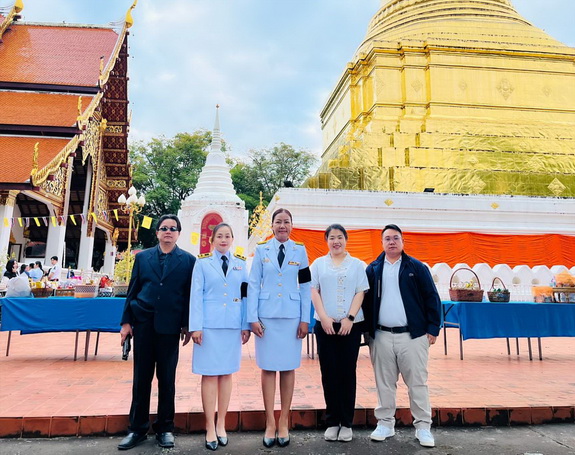 นายสัตวแพทย์ศร ธีปฏิมากร ปศุสัตว์จังหวัดลำปาง มอบหมายนางสาวศศิธร ติคำรัมย์ น.สพ. ชำนาญการพิเศษ หัวหน้ากลุ่มฯ และทีมงานกลุ่มพัฒนาคุณภาพฯ เข้าร่วมในพิธีเจริญพระพุทธมนต์และทำบุญตักบาตร เพื่อถวายเป็นพระราชกุศล เนื่องในวันคล้ายวันพระบรมราชสมภพ พระบาทสมเด็จพระบรมชนกาธิเบศร มหาภูมิพลอดุลยเดชมหาราช บรมนาถบพิตร วันชาติ และวันพ่อแห่งชาติ 5 ธันวาคม 2568 ณ วัดพระแก้วดอนเต้าสุชาดาราม พระอารามหลวง