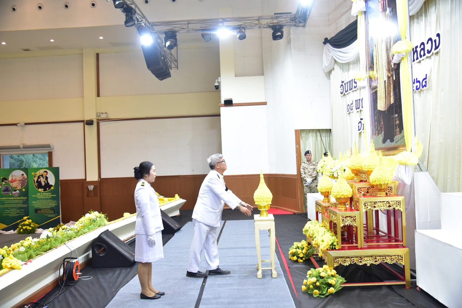 นายสัตวแพทย์ศร ธีปฏิมากร ปศุสัตว์จังหวัดลำปาง พร้อมด้วยนางอำพรรณ์ รู้หลัก หัวหน้าฝ่ายบริหาร และเจ้าหน้าที่สำนักงานปศุสัตว์จังหวัดลำปาง ร่วมพิธีวางพานพุ่ม เพื่อเป็นการแสดงความจงรักภักดีและน้อมรำลึกในพระมหากรุณาที่คุณของ พระบาทสมเด็จพระบรมชนกาธิเบศร มหาภูมิพลอดุลยเดชมหาราช บรมนาถบพิตร “ พระบิดาแห่งฝนหลวง“ โดยมี นายวิวัฒน์ อินทร์ไทยวงศ์ ผู้ว่าราชการจังหวัดลำปาง เป็นประธานในพิธีฯ ณ อาคารหอประชุม ศาลากลางจังหวัดลำปาง