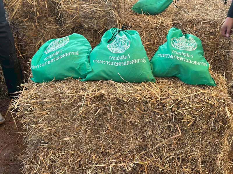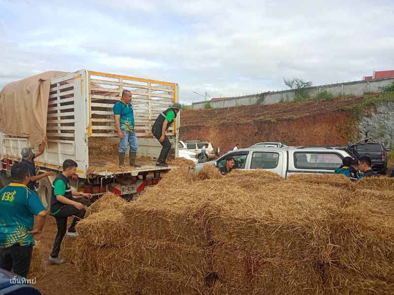 3) มอบหญ้าแห้งอัดฟ่อน จำนวน 1,500 กก. เพื่อบรรเทาความเดือดร้อนเกษตรกรผู้เลี้ยงสัตว์