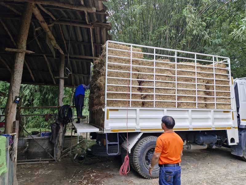 วันที่ 9 ตุลาคม 2568 นายวิชาญ สุขประเสริฐ นายสัตวแพทย์ชำนาญการพิเศษ รักษาราชการแทนปศุสัตว์จังหวัดลำพูน นำกลุ่มยุทธศาสตร์และสารสนเทศการปศุสัตว์ นายประพิศ เสนาจิตร ปศุสัตว์อำเภอแม่ทา เจ้าหน้าที่ปศุสัตว์อำเภอแม่ทา พร้อมด้วยนายประพรรณ์ ยาวิชัย รองนายกเทศมนตรีตำบลทาปลาดุก และศูนย์วิจัยและพัฒนาอาหารสัตว์ลำปาง มอบหญ้าแห่งอัดฟ่อน จำนวน 100 ฟ่อน ซึ่งได้รับการสนับสนุนจากศูนย์วิจัยและพัฒนาอาหารสัตว์ลำปาง จังหวัดลำปาง มอบให้แก่ นายไสว เสนพนัสสัก เลขที่ 74/1 หมู่ที่ 2 บ้านทาป่าสัก ตำบลทาปลาดุก อำเภอแม่ทา จังหวัดลำพูน เกษตรกรผู้ประสบภัยจากน้ำไหลหลากท่วมฟาร์มโคนม และขาดแคลนพืชอาหารสัตว์ ผลการดำเนินการเกษตรกรมีความพึงพอใจเป็นอย่างมากจากการช่วยเหลือบรรเทาความเดือดร้อนในครั้งนี้