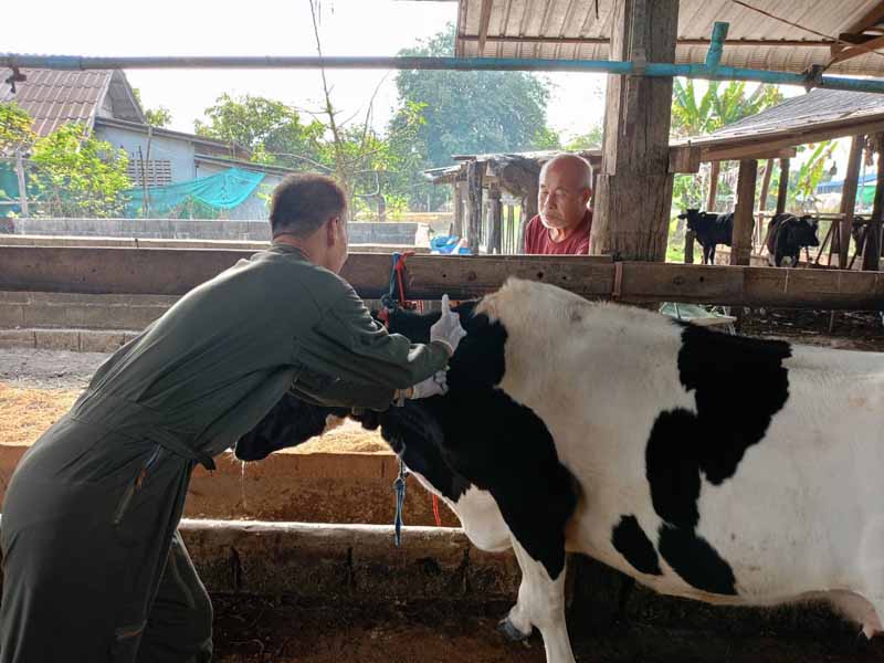 วันที่ 5 มีนาคม 2569 นายศุภกร พงษ์ตุ้ย ปศุสัตว์อำเภอป่าซาง พร้อมด้วยนายดนุเดช สุยะ เจ้าพนักงานสัตวบาล ลงพื้นที่ดำเนินการรณรงค์ฉีดวัคซีนป้องกันโรคปากและเท้าเปื่อยในโคนม รอบที่ 2/2569 ในพื้นที่หมู่ 4 ตำบลมะกอก จำนวน 2 ราย จำนวนโคนม 43ตัว พื้นที่หมู่ 5 ตำบลท่าตุ้ม จำนวน 1ราย จำนวนโคนม 56 ตัว ผลการปฏิบัติงานเป็นไปด้วยความเรียบร้อย ได้รับความร่วมมือจากเกษตรกรเป็นอย่างดี
