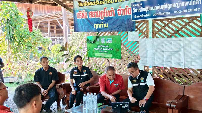 วันที่ 16 ธันวาคม 2568 นสพ.วิชาญ สุขประเสริฐ นายสัตวแพทย์ชำนาญการพิเศษ รักษาราชการแทนปศุสัตว์จังหวัดลำพูน พร้อมด้วยกลุ่มส่งเสริมและพัฒนาการปศุสัตว์ สำนักงานปศุสัตว์อำเภอบ้านโฮ่งและนายพิน ไชยกันทา พร้อมสมาชิกกลุ่มร่วมต้อนรับนายพืชผล น้อยนาฝาย ปศุสัตว์เขต 5 และส่วนส่วนเสริมและพัฒนาการปศุสัตว์ ณ ที่ทำการวิสาหกิจชุมชนผู้ปลูกหญ้าแพงโกล่าอำเภอบ้านโฮ่ง จังหวัดลำพูน โดยได้มีการเล่าความเป็นมาของการทำอาชีพการปลูกหญ้าแพงโกล่าตั้งแต่ปี 2548 จนถึงปัจจุบัน จากที่เขาหาว่าผมบ้า เปลี่ยนจากปลูกข้าวมาปลูกหญ้า ได้สร้างความเชื่อมั่น ประสบความสำเร็จเชิงประจักษ์ มีตลาดรองรับที่แน่นอน สามารถจัดการผลผลิตได้ตลอดทั้งปี ซึ่งทางกลุ่มมีแผนจะซื้อที่ดินไว้สำหรับสร้างโกดังของกลุ่มเนื่องจากปัจจุบันมีการเช่าโกดังซึ่งเสียค่าใช้จ่ายเดือนปีละ 120,000 บาท หากได้ที่ดินเป็นของกลุ่มแล้วก็จะมีการเขียนโครงการเพื่อขอสนับสนุนงบประมาณในการจัดสร้างโกดังสำหรับจัดเก็บหญ้าแห้งให้จำหน่ายได้ตลอดทั้งปี พร้อมทั้งลงพื้นที่โกดังดูการจัดเก็บหญ้าแพงโกล่าที่อัดก้อน และแปลงหญ้าสด “หญ้าแพงโกล่า อาชีพที่ยั่งยืน”