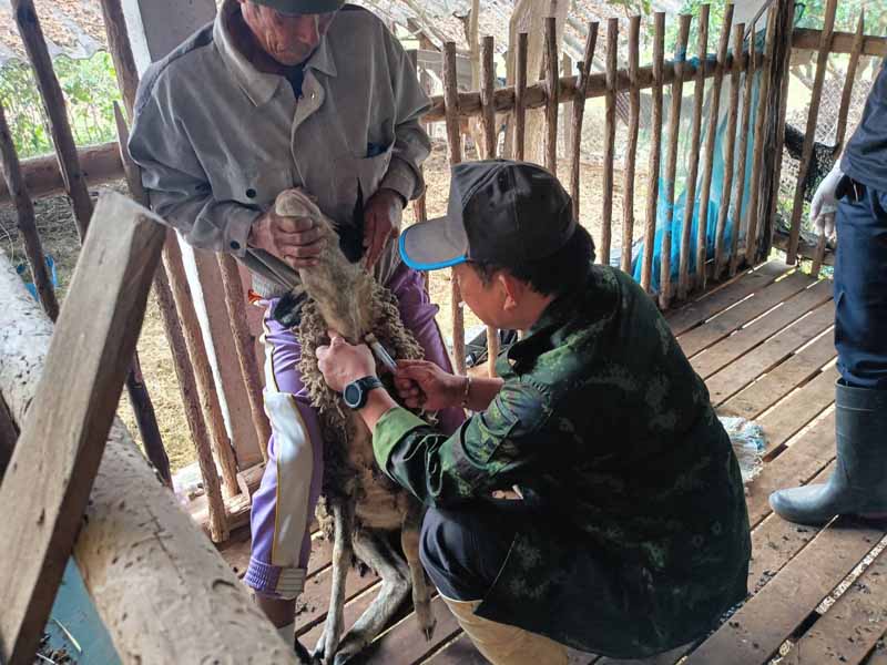 วันที่ 23 มกราคม 2569 สำนักงานปศุสัตว์อำเภอทุ่งหัวช้าง ดำเนินการเจาะเลือดแกะ จำนวน 3 ฟาร์ม